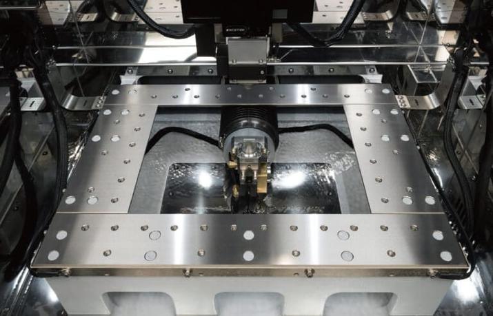 Прочная литая конструкция осей U/V обеспечивает стабильную точность резания. Нержавеющий рабочий стол с твердостью HRC50° имеет высокожесткий корпус станка, оптимизированный с помощью передового анализа методом конечных элементов (FEM). Увеличенный пролет основания станка повышает механическую точность.